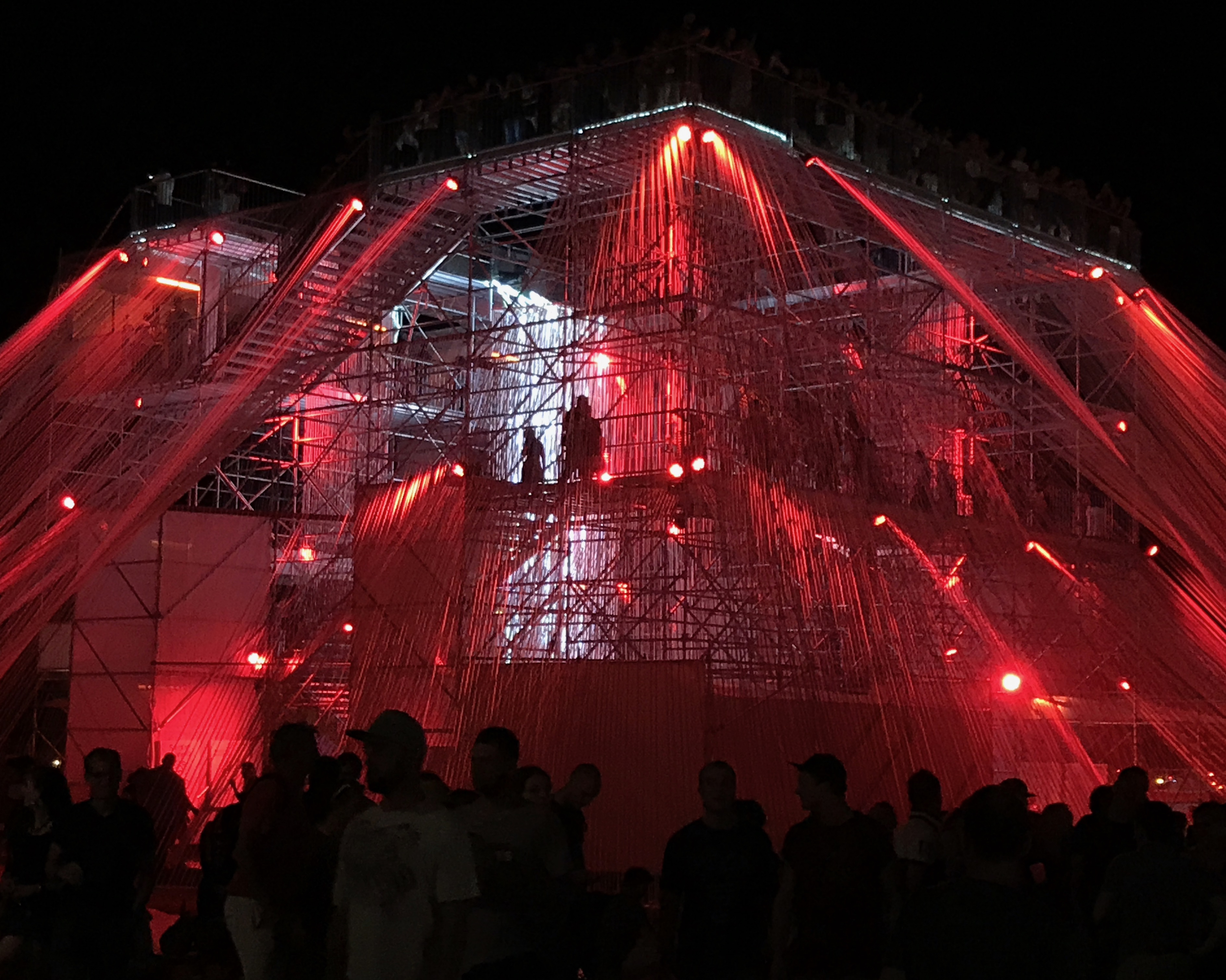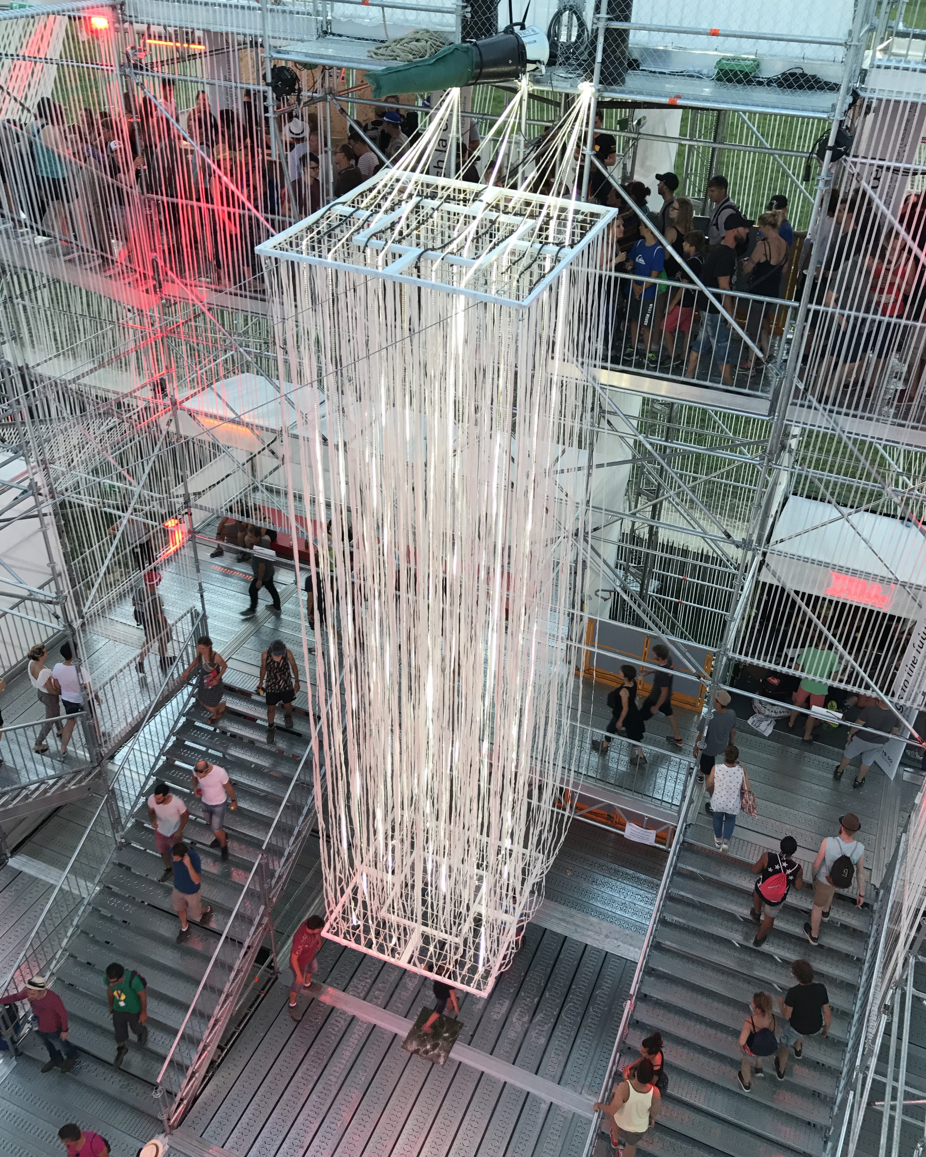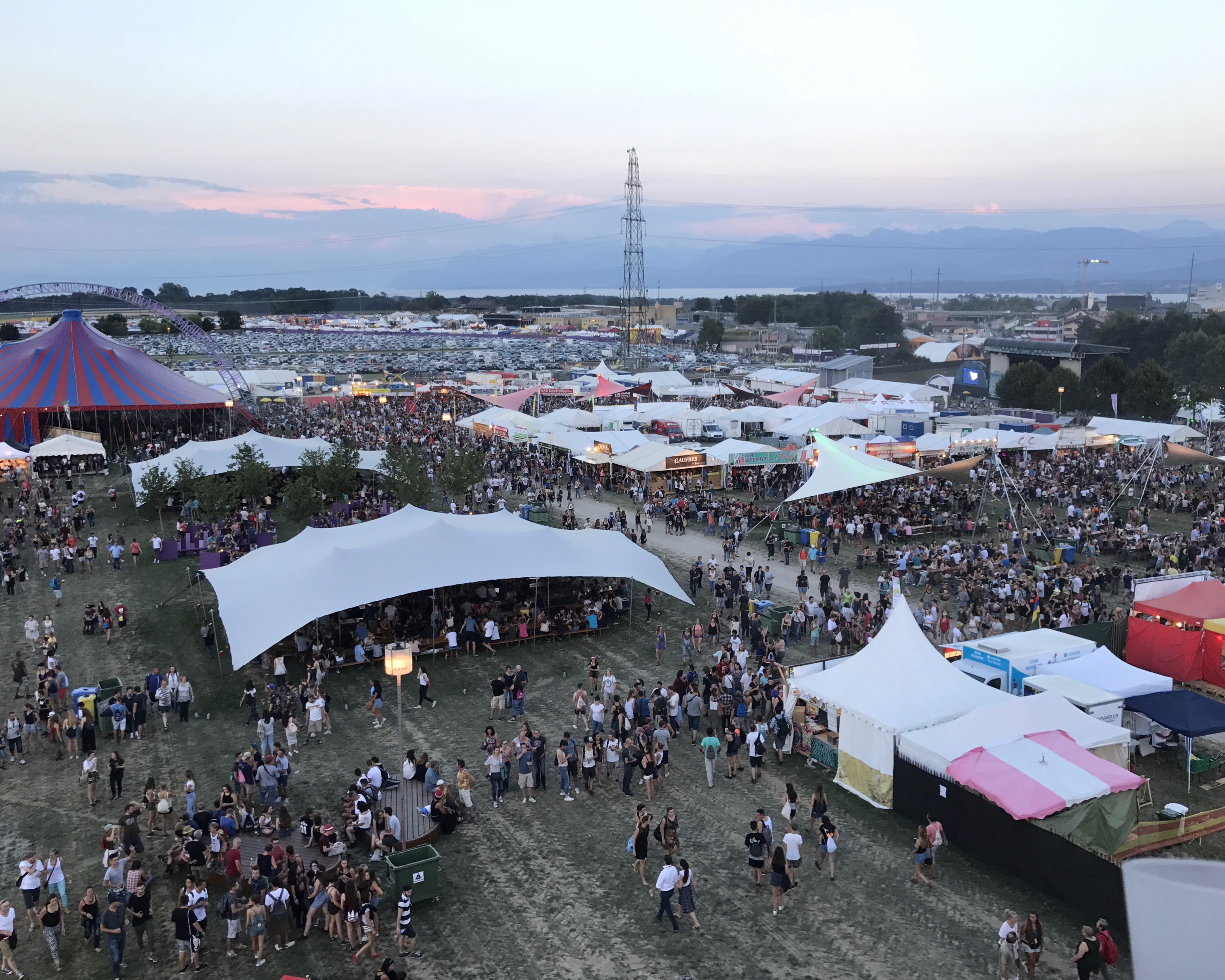 Oui Nyon, ce n’est pas que de la musique, c’est un petit monde que l’on est heureux de retrouver chaque année, des lieux, des nouveautés aussi, comme cette année, ce volcan fabriqué de 50 kilomètres de ruban blanc conçu par la HES-SO (haute école spécialisée de Suisse occidentale), sur lequel on peut monter, et qui nous donne un magnifique point de vue sur le festival.