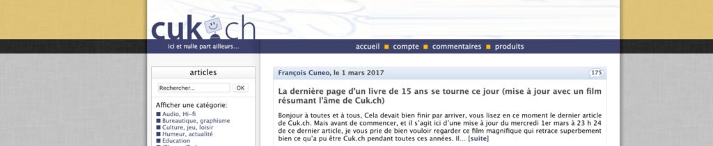 Juste un petit mot à propos du site Cuk.ch que vous connaissez peut-être et dont j’étais responsable au milieu d’une joyeuse bande de rédacteurs, site fermé il y a presque deux ans maintenant.