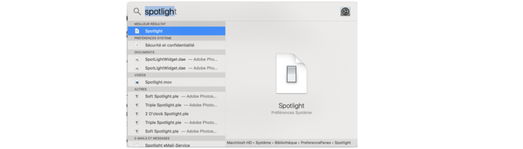 Je fais juste remarquer que cette dernière option est certainement la plus intéressante dans bien des cas, puisque le chemin affiché par Spotlight est largement tronqué s’il est trop long, et que dans ce cas, la fonction d’affichage du chemin est sans intérêt aucun, à moins qu’il soit possible de faire défiler le chemin, mais je n’ai pas trouvé comment.