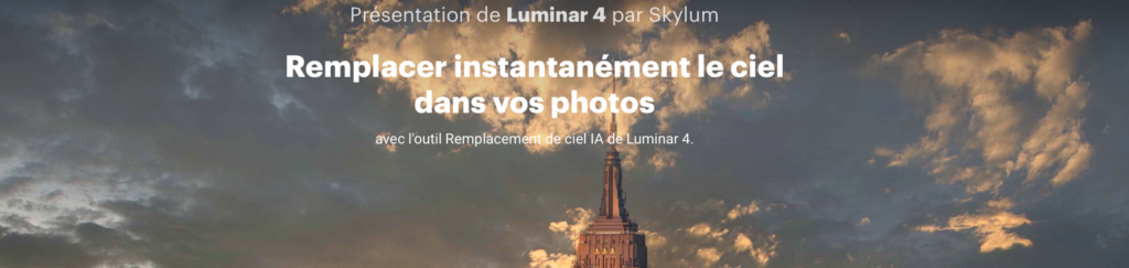 La version 3 de Luminar nous propose déjà, avec la même technologie d’intelligence artificielle, un améliorateur de ciel.