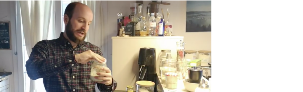 Aujourd’hui, j’aimerais laisser la parole sur ce sujet à l’un de mes fils, Félix, le 3e d’une lignée de 4 qui se prolonge avec une fille en position 5, Félix donc qui, « profitant » du confinement, et avec une certaine expérience en la matière, vous propose des chroniques boulangères quotidiennes, en partant de zéro