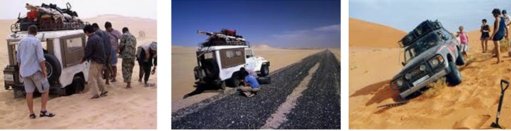 Un touriste était dans le désert marocain, sur une piste, et s’est ensablé. Il a tout essayé pour s’en sortir et n’arrivait pas à ses fins notamment en forçant quelque peu avec les gaz.