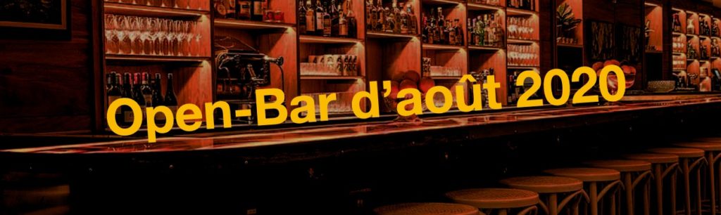Dans cette torpeur estivale où, pour la première fois, je n’ai même pas entendu un pétard ou vu une fusée décoller pour le premier août, jour de la fête nationale en Suisse, ce qui, je dois bien l’admettre, ne me dérange pas le moins du monde, détestant les feux d’artifice lancés par des enfants ou des adultes inconscients, pas fâché non plus d’avoir vu la faune être largement moins dérangée par les feux tirés par les communes qui ont pour la plupart biffé cette prestation cette année, de cette torpeur estivale donc, je vous transmets les clés de cet Open Bar d’août 2020, comme le veut la tradition qui veut que ce soit vous qui avez la parole pour parler de n’importe quoi le premier lundi du mois.