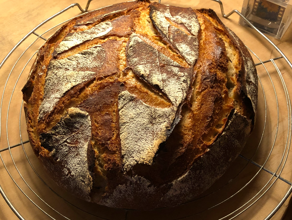 Je l’ai écrit ici il y a un déjà, depuis octobre 2019, soit bien avant le début de la pandémie, je me suis mis à faire mon pain moi-même, avec du levain, de l’eau, de la farine bio achetée à quelques kilomètres de chez moi et quelques grammes de sel.