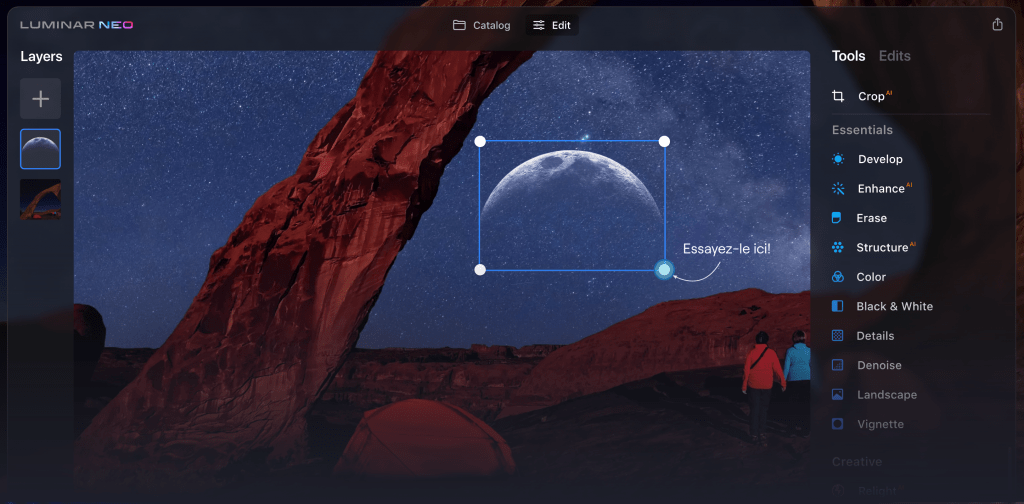 Luminar Neo, quant à lui, est destiné à ceux qui souhaitent disposer de davantage d’options d’édition et de contrôle créatif. L’application permet de créer des images détaillées et expressives grâce à un processus de travail avancé basé sur des couches ainsi que des outils flexibles applicables dans n’importe quel ordre. Elle est également dotée d’un moteur central ultra rapide permettant d’effectuer rapidement les tâches les plus complexes.