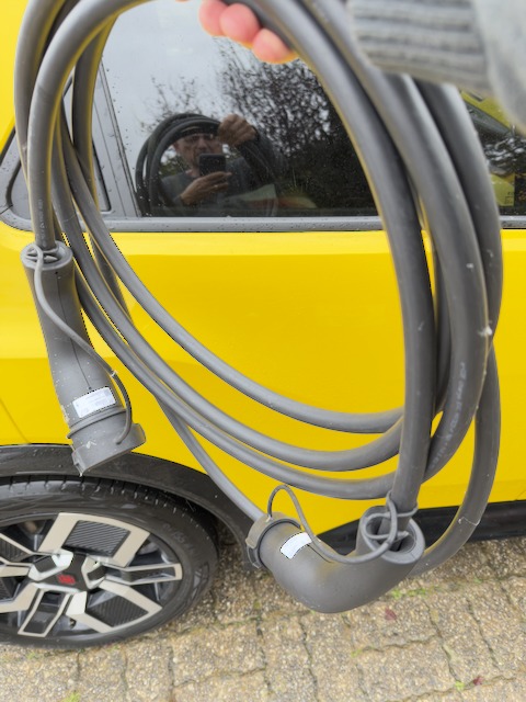 Bon, j’ai compris, je mets ce foutu câble, bien lourd, difficile à enrouler (qui consomme donc de l’énergie à transporter), soit dans le coffre, soit devant la banquette arrière.